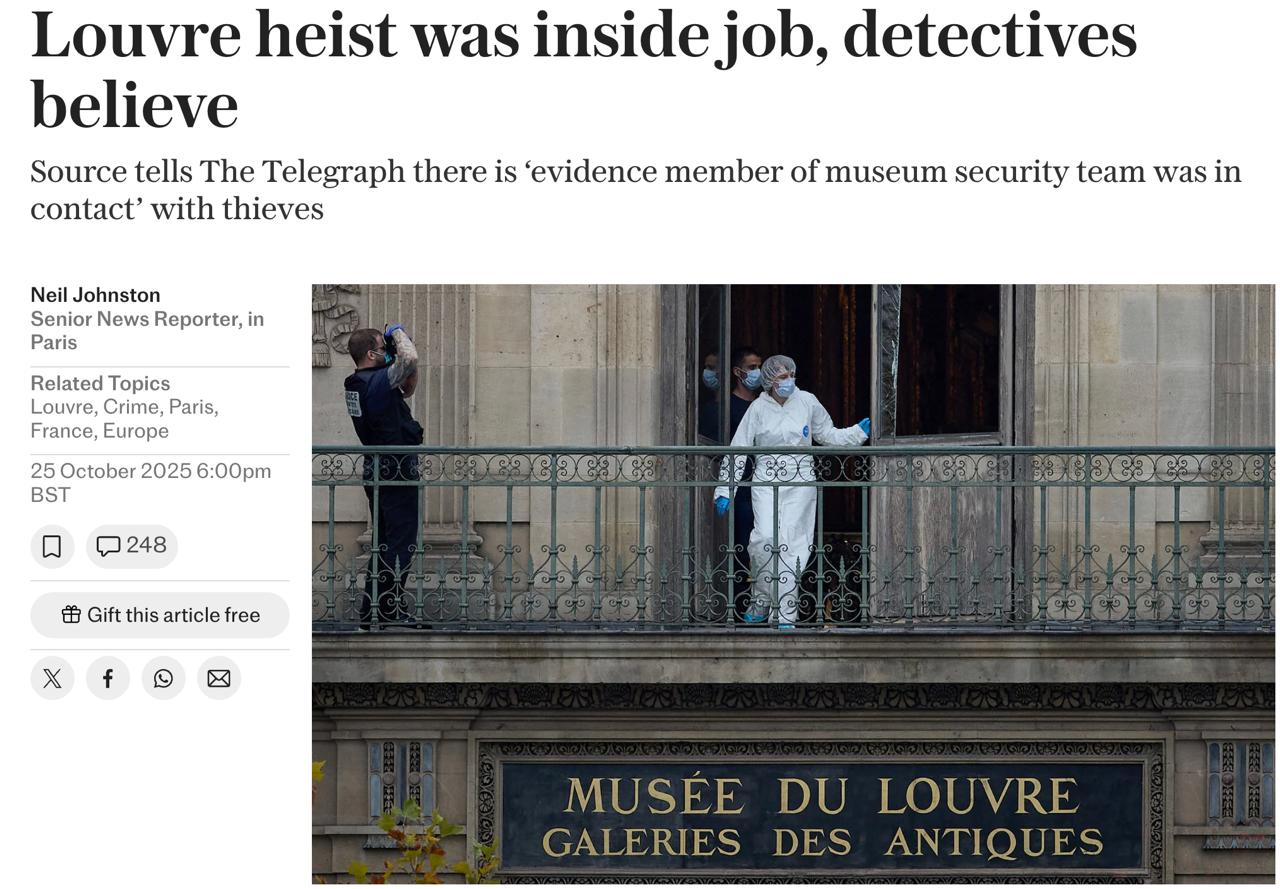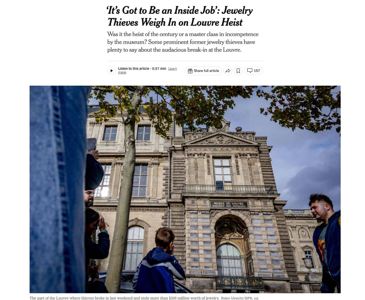 Многие известные бывшие грабители ювелирных изделий также уверены, что на Лувр навел кто-то изнутри, пишет New York Times.