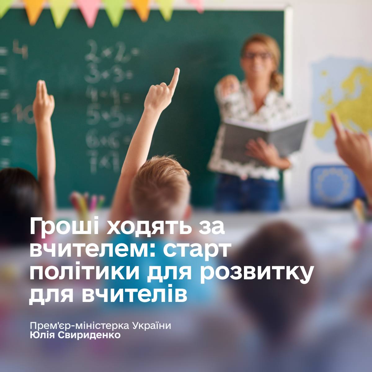 "Правительство запустило новый инструмент поддержки украинских педагогов — политику "Деньги ходят за учителем". Теперь каждый учитель сам будет решать, как развиваться и где учиться. Государство будет насчитывать 1500 гривен на виртуальный счет каждого педагога. Эти средства можно будет самостоятельно использовать на учебные курсы, отвечающие собственным потребностям и профессиональным планам. Весь процесс будет проходить на государственной диджитальной платформе", - написала Свириденко.
