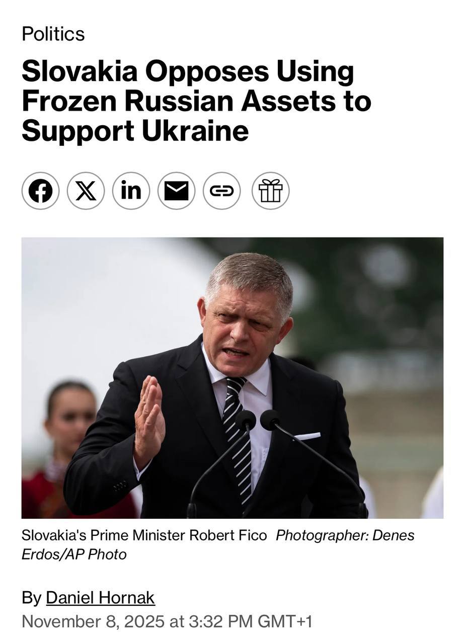 "Словакия не будет участвовать в каких-либо юридических или финансовых схемах по изъятию замороженных активов, если эти средства будут потрачены на военные расходы в Украине. Мы хотим закончить войну или подогреваем ее? Мы собираемся предоставить Украине 140 миллиардов евро, чтобы война продолжалась. Что это значит? Что война продлится еще как минимум два года", - заявил словацкий премьер.
