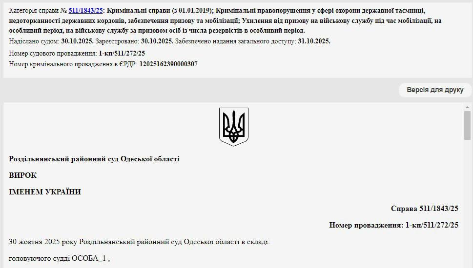 На суде он свою вину не признал и объяснил, что действительно в апреле его доставили в ТЦК и пытались вручить ему боевую повестку, но он отказался от мобилизации, поскольку не желает убивать людей.
