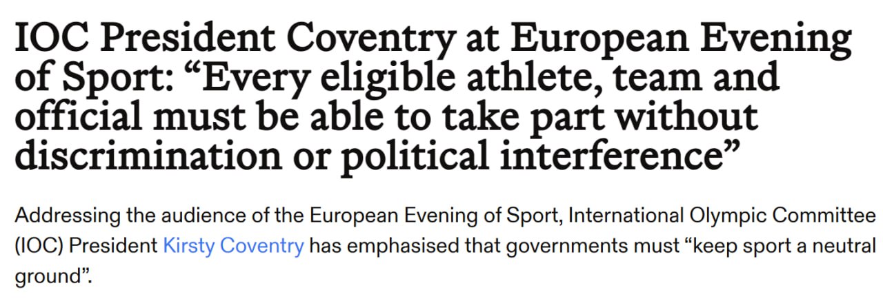 А перед этим президент МОК говорила, что выступает против отстранения стран от участия в Олимпиадах из-за войн и намерена начать переговоры о возможном возвращении России на Игры.