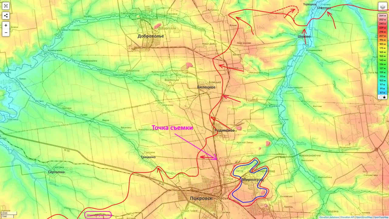 Российские паблики вчера написали, что дорога между Покровском и Мирноградом уже физически перерезана и Мирноград полностью окружен, а Покровск целиком захвачен.