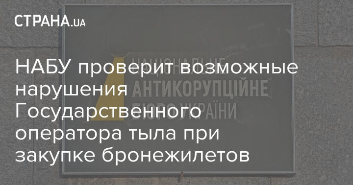 Национальное антикоррупционное бюро Украины собирается проверить на предмет нарушений при закупках бронежилетов госпредприятие "Государственный оператор тыла.