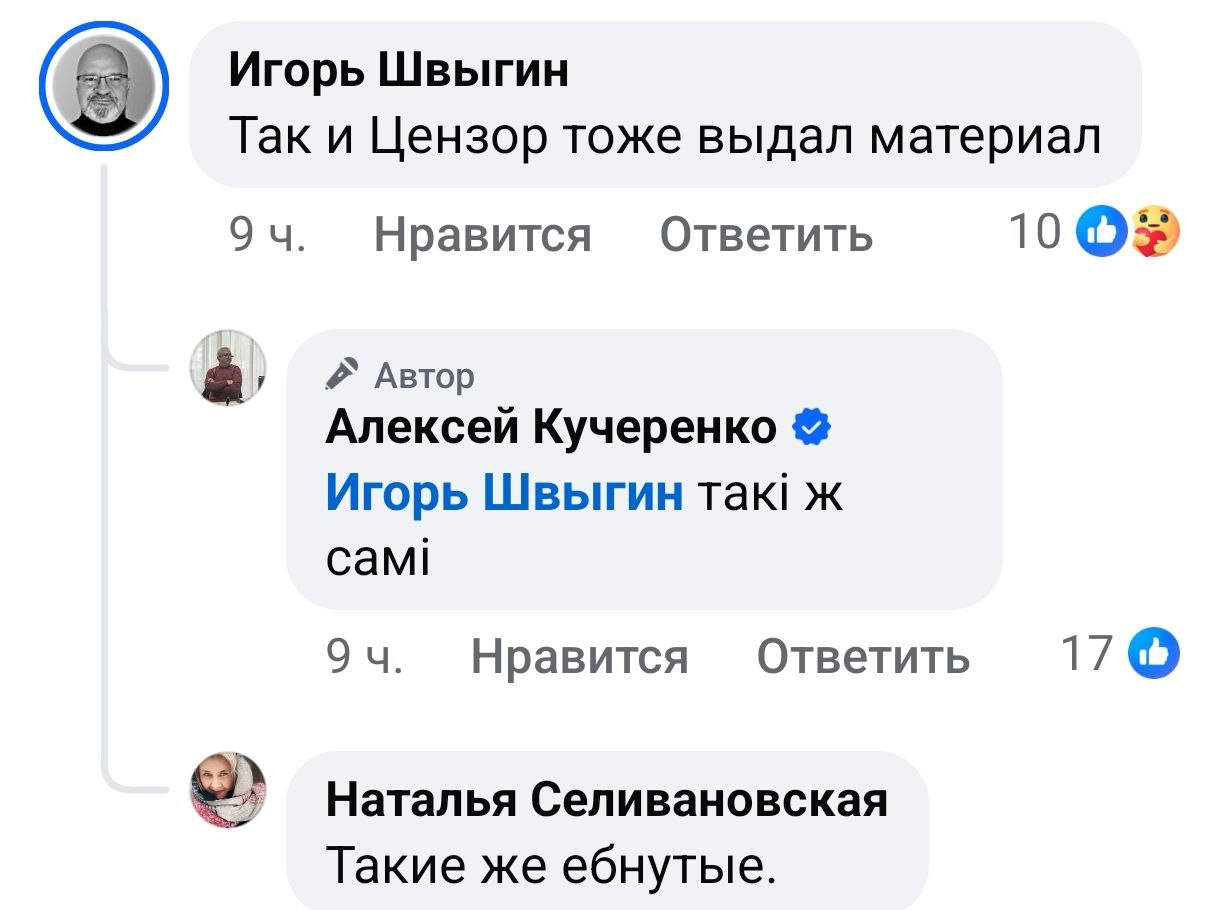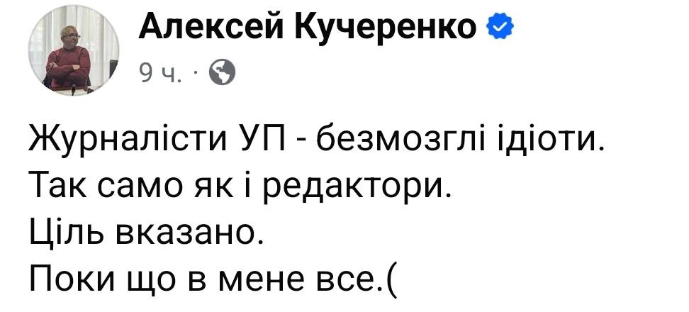 Народный депутат Алексей Кучеренко написал, что журналисты "Украинской правды", первыми опубликовавшие эту новость, после чего ее дали и другие СМИ, "безмозглые идиоты".