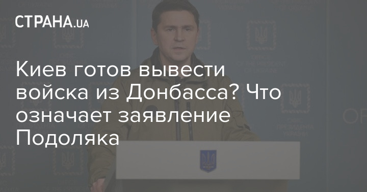 Заявление советника Офиса президента Михаила Подоляка в комментарии французской газете Le Mond о том, что Киев согласен вывести войска из Донецкой области, выглядит радикальным изменением позиции украинских властей, которые раньше вообще отказывались обсуждать этот вопрос.