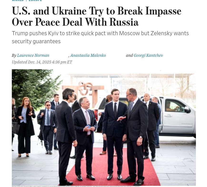 7.42 Зеленский на переговорах с Уиткоффом в Берлине предложил отказаться от стремления Украины в НАТО.