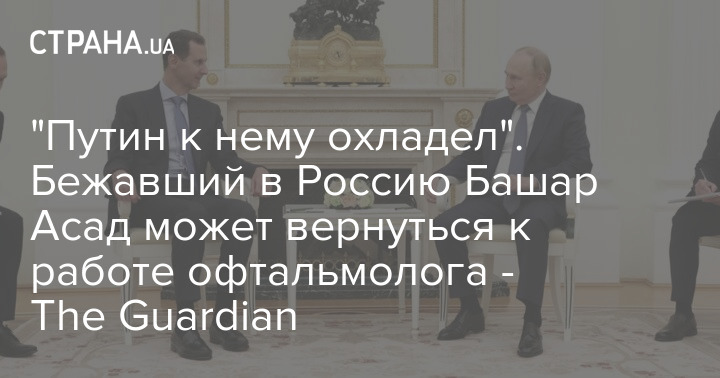 Бывший президент Сирии Башар Асад, проживающий в подмосковной Рублевке, может снова начать работать офтальмологом.