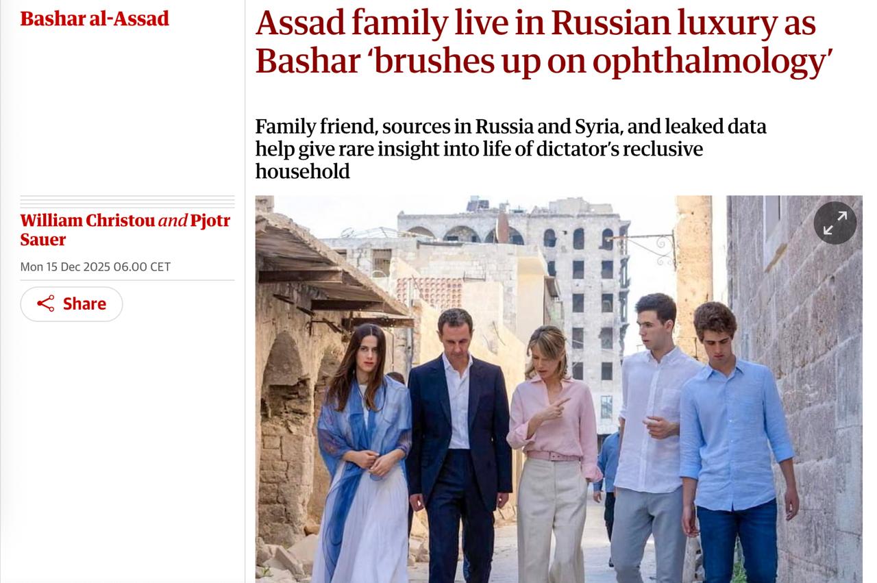 По его данным, Асад, получивший образование офтальмолога в Лондоне и Дамаске, после свержения в Сирии учит русский язык и снова проходит медицинские курсы.