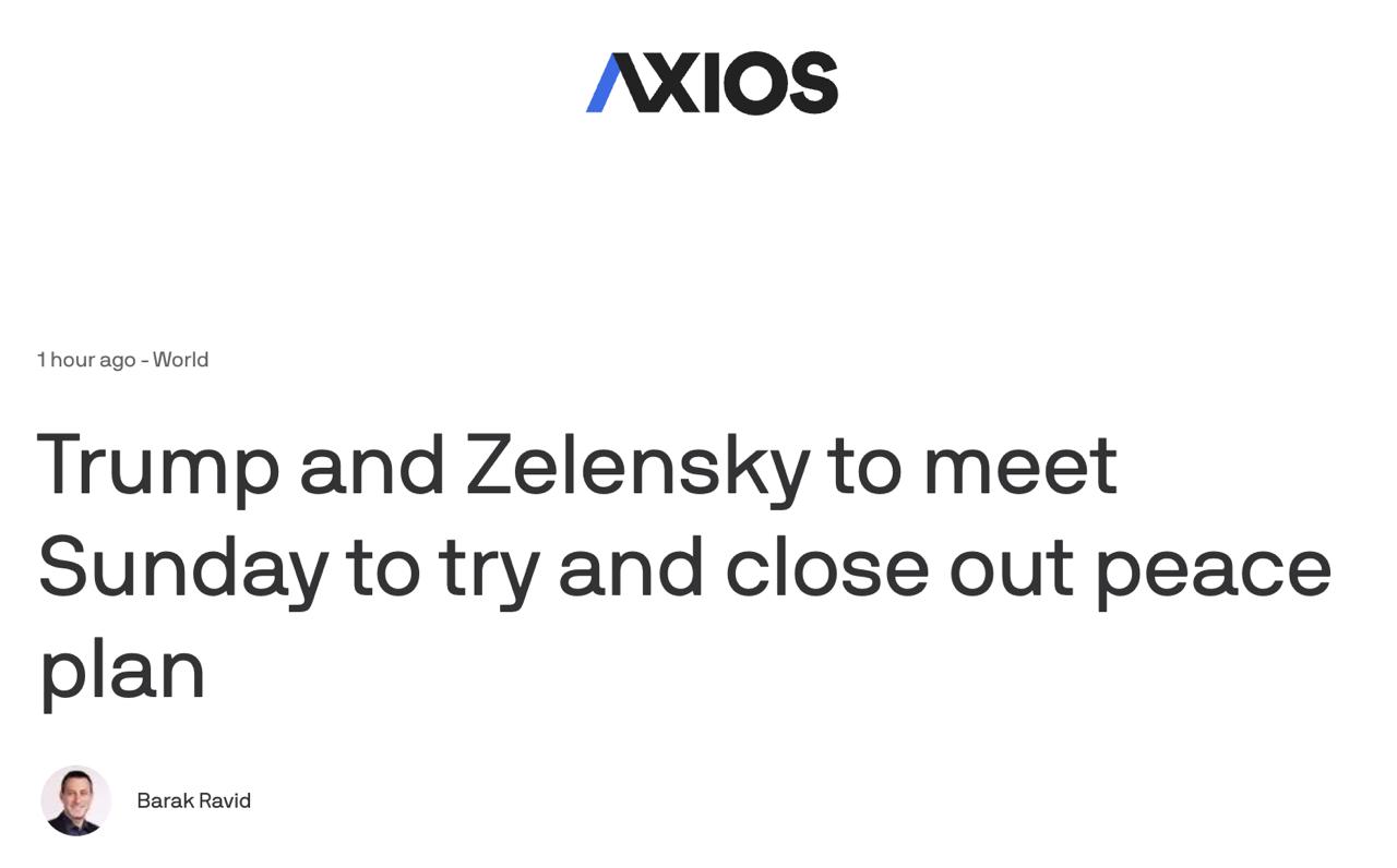 Инсайд Axios подтвердил Зеленский, заявив, что его встреча с Трампом нужна для согласования спорных 10% в проекте мирного плана, в частности, вопросов гарантий безопасности, территорий и послевоенного восстановления Украины. По словам президента, остальные 90% уже согласованы на уровне делегаций.