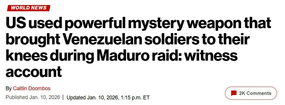 Во время операции по захвату экс-президента Венесуэлы Николаса Мадуро военные США применили мощное неизвестное оружие, которое обезвредило венесуэльских солдат и технику.