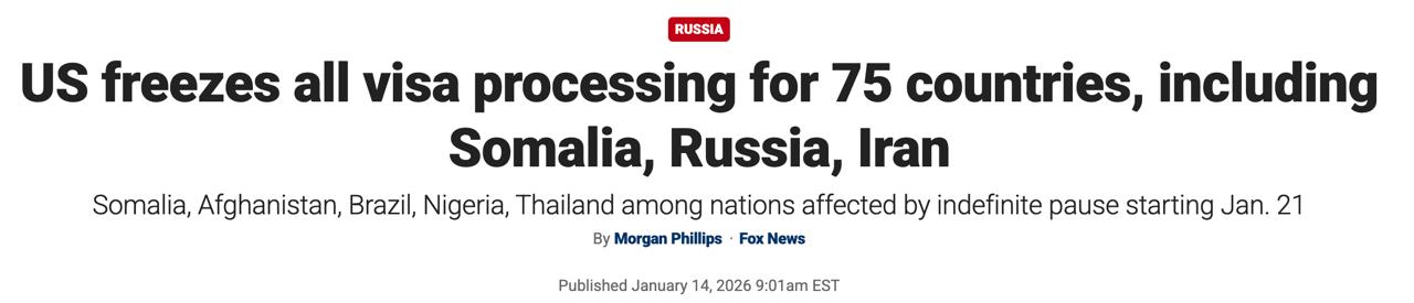 Государственный департамент приостанавливает обработку всех заявок на американские иммиграционные визы для граждан 75 стран в рамках мер по борьбе с приезжими, которые могут стать обузой для общества.