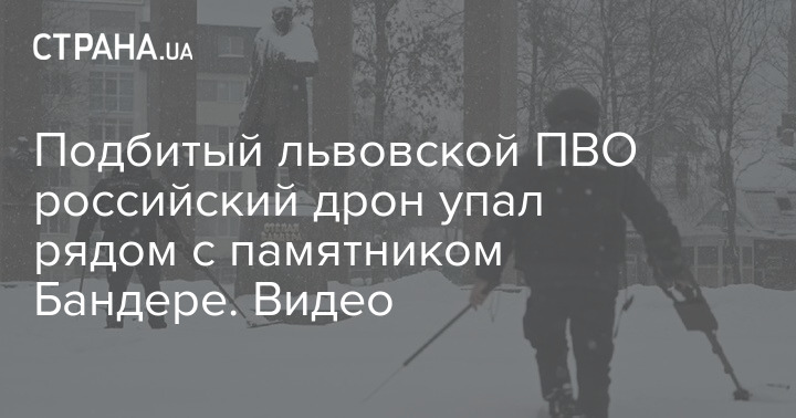 Подбитый львовской ПВО российский дрон упал рядом с памятником Бандере. Видео