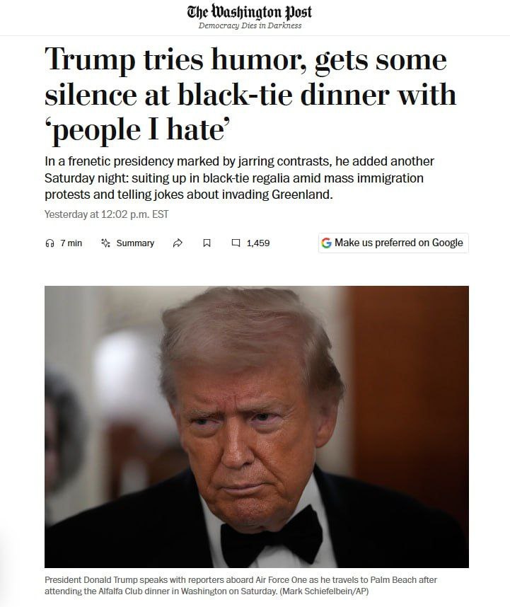 Во время своей речи Трамп также пошутил, что сократит спич, потому что хочет "посмотреть на вторжение в Гренландию".