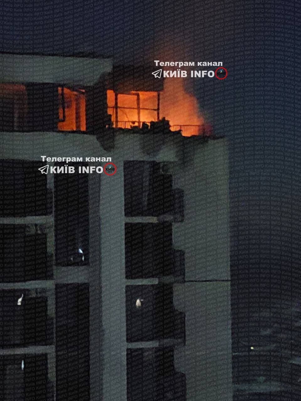 В Дарницком районе произошло попадание в нежилую застройку. По другому адресу из-за падения обломков произошло возгорание на крыше 26-этажного жилого дома, разрушение перегородок и остекления незаселённой квартиры на верхнем этаже. Пожар ликвидирован.