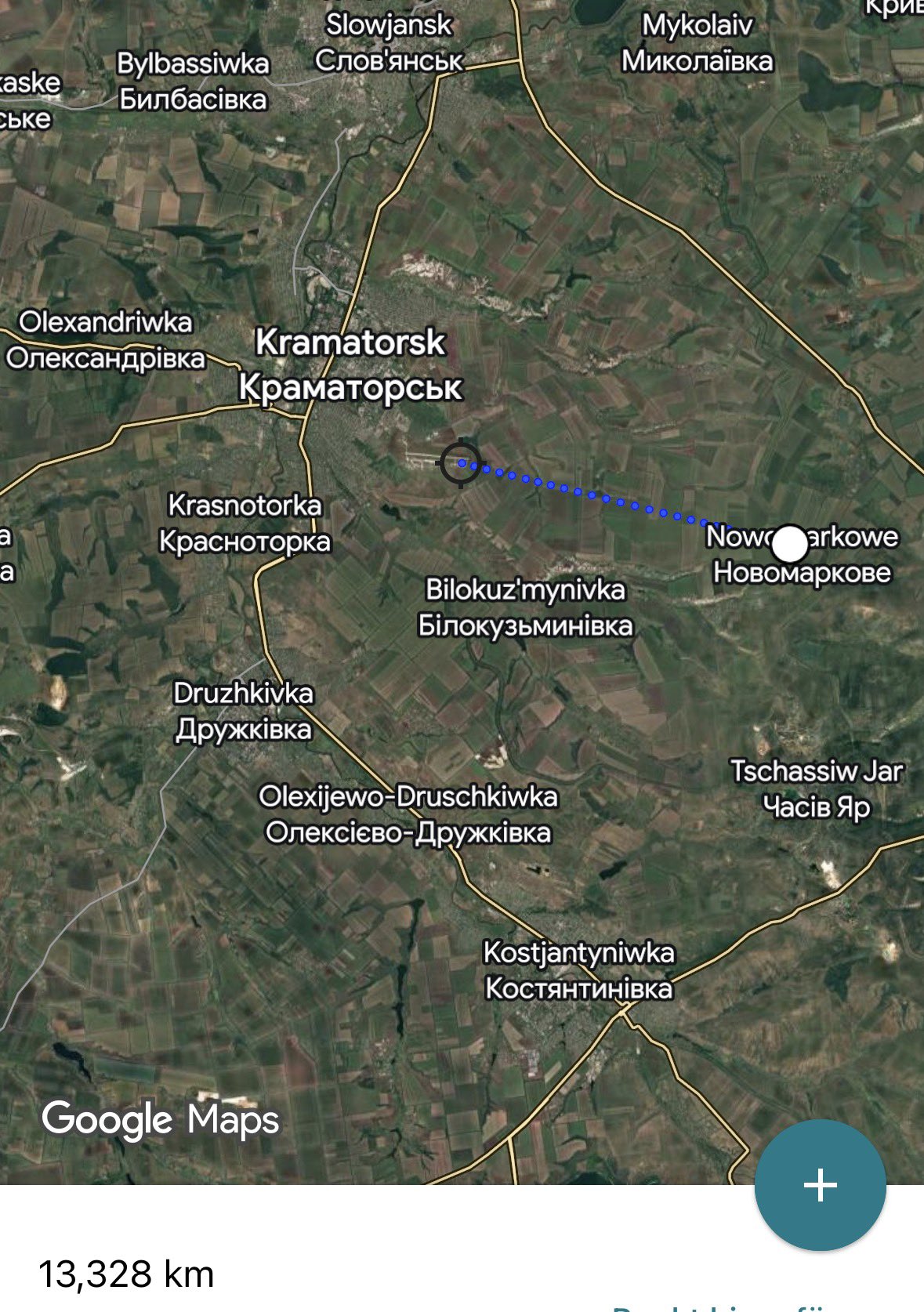 "Российские войска подняли свой флаг в Новомарковом — всего в 13 км к востоку от аэропорта Краматорска и в 16 км к востоку от самого города. Это означает не только то, что 250 000 человек оказываются в зоне оптической досягаемости FPV, но и то, что россияне продолжают продвигаться к своему "золотому яблоку" на Донбассе", - написал Репке, говоря о Славянско-Краматорской агломерации, которая является последним крупным укрепрайоном ВСУ в Донецкой области.