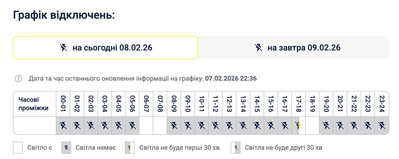 При этом во многих домах, судя по расписанию на 8 февраля, света не будет более 20 часов в сутки (ранее это было по 15-18 часов).