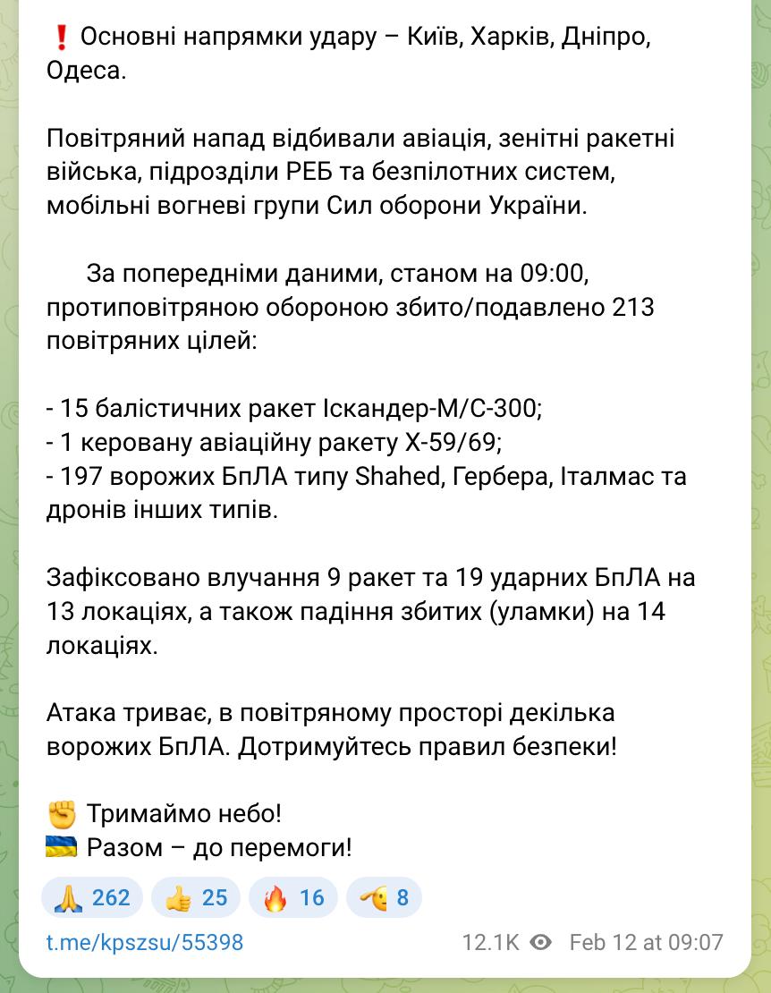 Также были сбиты единственная авиаракета и 197 ударных БпЛА из 219.