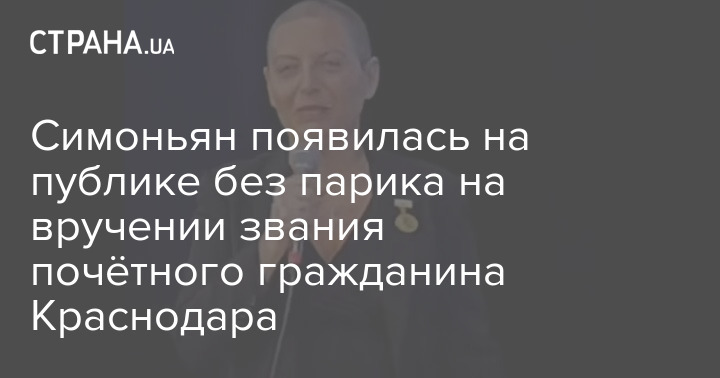 Симоньян появилась на публике без парика на вручении звания почётного гражданина Краснодара