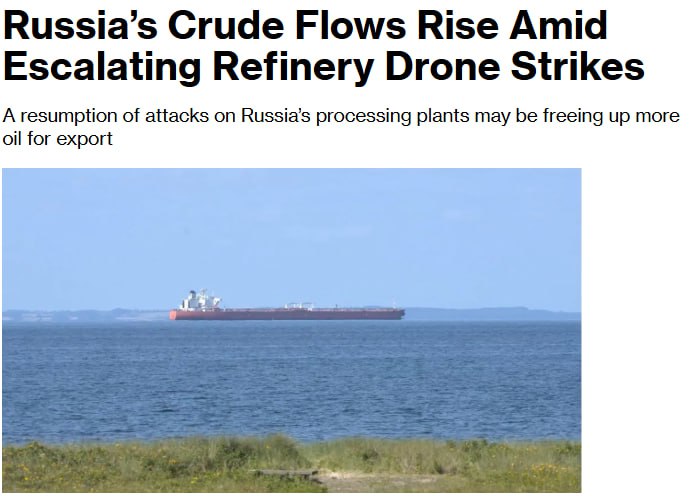 Издание подчеркивает, что рост экспорта происходит на фоне активизации украинских ударов по нефтеперерабатывающим заводам РФ и приостановки поставок по трубопроводам в Венгрию и Словакию.