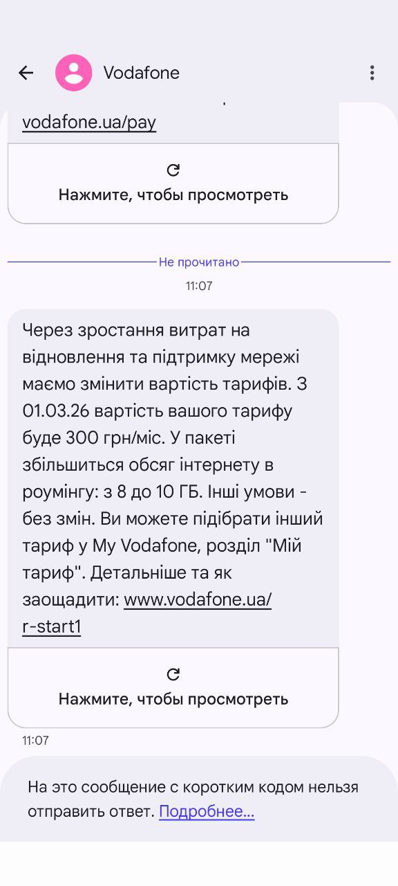 "Водафон" предупреждает украинцев о резком повышении тарифов с 1 марта