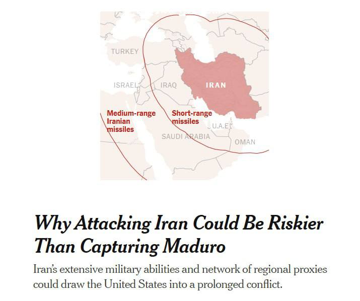 New York Times пишет о серьёзных проблемах для США в случае операции против Ирана, подчеркивая разницу в ситуации с Венесуэлой.