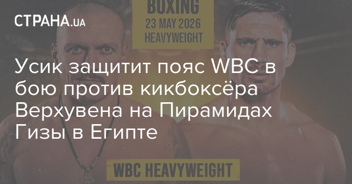 Украинский боксёр и объединённый чемпион мира в супертяжелом весе Александр Усик будет защищать пояс WBC в бою против голландца Рико Верхувена, чемпиона мира по кикбоксингу в сверхтяжёлом весе.