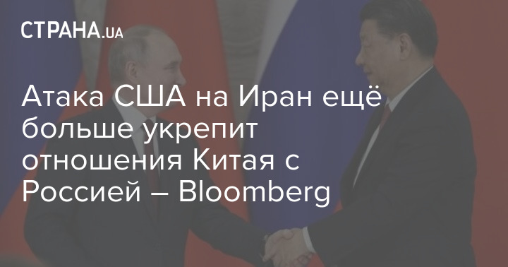 Снимок заголовка на bloomberg.com – Атака США на Иран ещё больше сблизит Китай с Россией