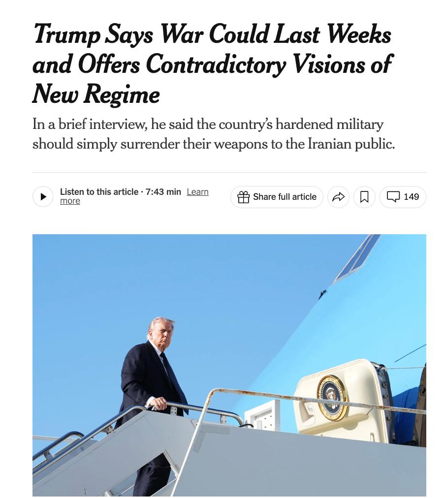 Глава Белого дома не стал называть имена кандидатов, отметив, что сначала американским военным нужно "довести дело в исламской республике до конца", пишет NYT.