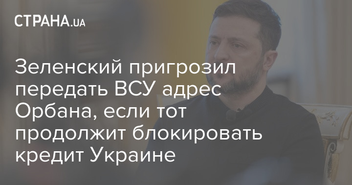Президент Владимир Зеленский угрожает дать адрес премьер-министра Венгрии Виктора Орбана Вооруженным силам Украины, если тот будет и далее блокировать кредит Украине в 90 миллиардов евро.