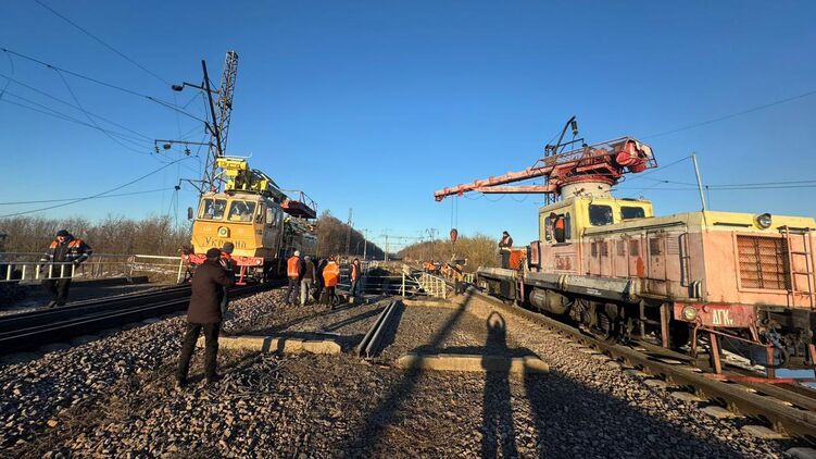 "Сейчас работы еще продолжаются в Житомирской области, где зафиксированы существенные повреждения железнодорожного полотна из-за попадания большого количества дронов", - сообщает "Укрзализныця".