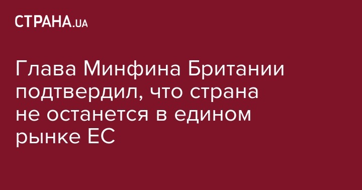 Глава Минфина Британии подтвердил, что страна не останется в едином рынке ЕС