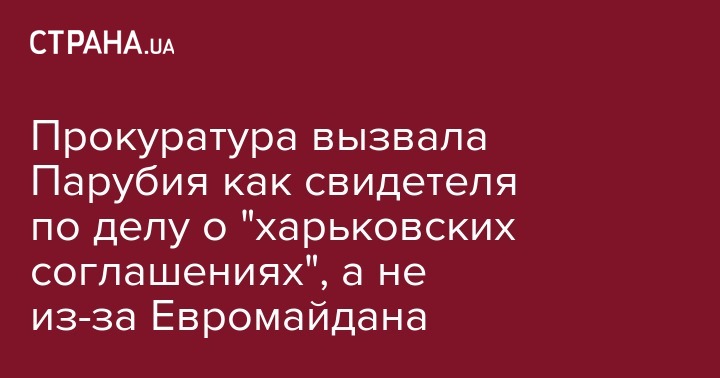 "Военная прокуратура вызвала Парубия как свидетеля в уголовном производстве, в котором изучаются обстоятельства подписания Януковичем "харьковских соглашений", - написала пресс-секретарь генпрокурора Украины Лариса Сарган в микроблоге в Твиттере.