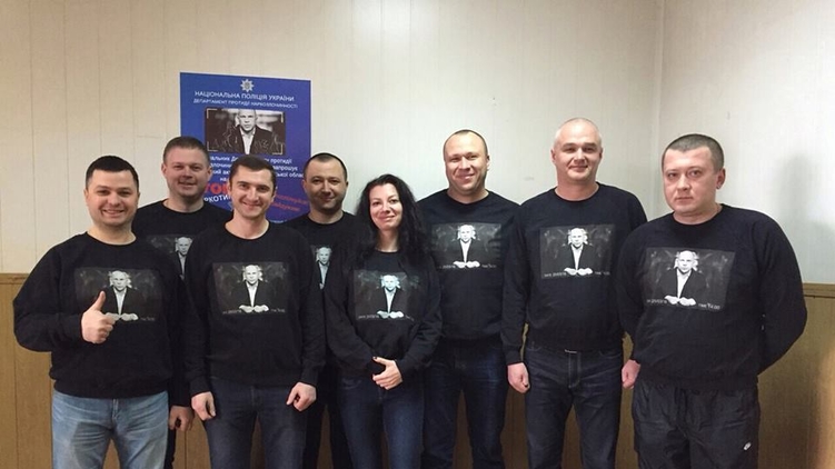 В Департаменте противодействия наркопреступности Нацполиции, который возглавляет одиозный силовик Илья Кива, сотрудники ходят с принтом его лица на регланах и футболках. Соответствующее фото опубликовали на официальном сайте Департамента противодействия наркопреступности в Facebook.