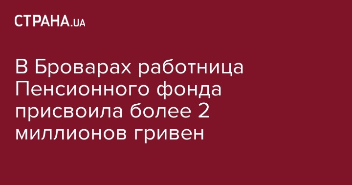 В Броварах работница Пенсионного фонда присвоила более 2 миллионов гривен