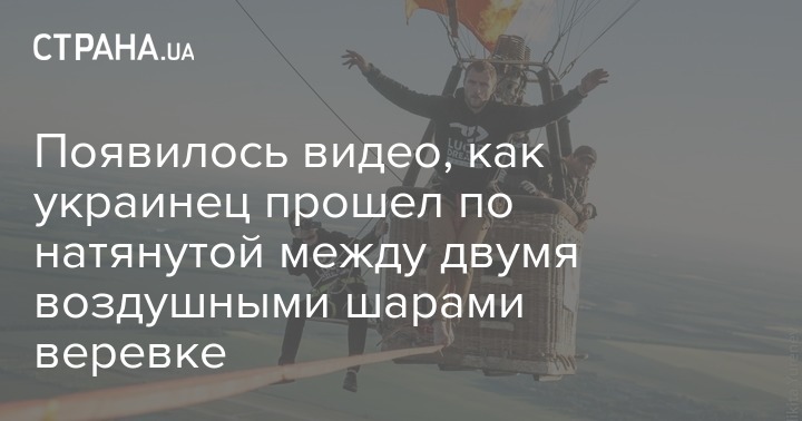Появилось видео, как украинец прошел по натянутой между двумя воздушными шарами веревке