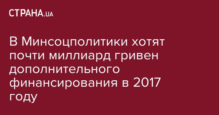 В Минсоцполитики хотят почти миллиард гривен дополнительного финансирования в 2017 году