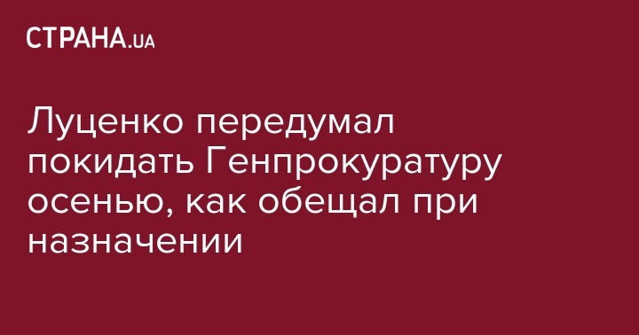 Генеральный прокурор Юрий Луценко не планирует уходит в отставку осенью, хотя во время его избрания в прошлом году говорил, что рассматривает эту должность как временную - на год-полтора. Об этом он заявил журналистам после заседания регламентного комитета Рады, передает УНН.