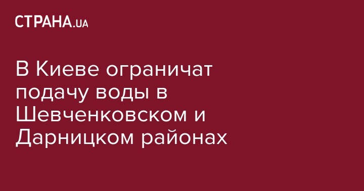 В Киеве ограничат подачу воды в Шевченковском и Дарницком районах