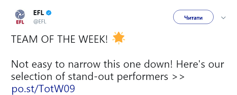 Об этом в Твиттер-микроблоге сообщает пресс-служба Английской футбольной лиги (EFL).