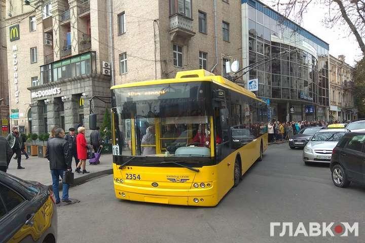 В Киеве на Майдане переполненный пассажирами троллейбус "сел на брюхо"