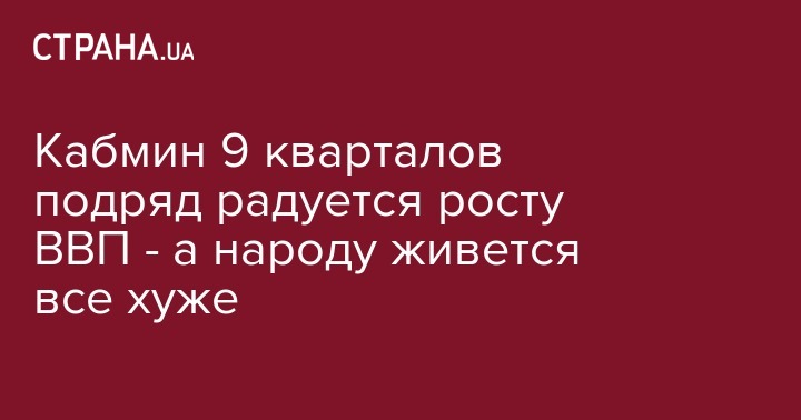 Не скрою, недавнее заявление первого вице-премьер-министра — министра экономического развития и торговли Степана Кубива о том, что ВВП Украины растет девять кварталов подряд, меня несколько приободрило и даже воодушевило. Но в тоже время очень огорчает тот факт, что еще большее число кварталов подряд падают реальные располагаемые доходы подавляющего большинства украинцев и их сбережения куда-то исчезают. Правда, если сложить рекордные зарплаты руководства «Нафтогаза» и нищенскую оплату учителей, то госстат может смело нарисовать в среднем по стране заметный рост номинальных доходов населения. Ну, это как средняя температура по больнице.