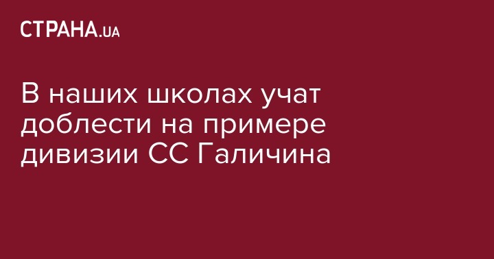 В киевской гимназии № 315 прошёл урок воинской доблести. Образцом доблести стало нацистское формирование - дивизия СС Галиция. Лекцию о «славных» эсэсовцах детям прочёл представитель сообщества Ukrainian Military Honor, которое занимается восхвалением украинцев служивших в нацистских подразделениях. Это новейший тренд для школ, когда доблести и мужеству учат на примерах коллаборации, службы в СС, шуцманшафте, вспомогательной полиции и борьбы с мирным населением.
