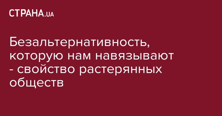 И что же сегодня должно стать безальтернативным? Странная многолетняя игра в маниакальное запугивание общества? Война/война/завтра война с обязательными многочисленными жертвами. Нет, понятно, что напуганным обществом легче манипулировать и легче его дробить на своих/чужих. И легче ездить ему по ушам дешевенькой (по смыслу), но дорогой (по бюджетному распилу) пропагандой. Понятно также, что агрессивный сосед вечно будет крутить свои скрипучие экспансионистские шарманки (потому что ничего другого не умеет). Но это ведь Украина). Здесь обязательно рано или поздно «прорвёт»... А может безальтернативными должны стать безусловные профаны в качестве министров, которые такими себе гламурно-лубочными баранчиками смотрят на проблемы и поначалу бравируют собственной крутизной. «Сейчас я тут всех порву!» Но потом трусливо годами отсиживаются в кустах. Потому что отраслевые воровские системы запросто съедают все их глупые инициативы... А нет! Безальтернативными должны стать апокрифические рассказы об «агентах/Путина», которые открыто сидят во всех кафешках юго-востока и столицы. Ну да, сидят. Но почему наша контрразведка не сидит рядом с ними, не слушает их в четыре ушлых уха, а предпочитает заниматься бизнесом на бизнесменах и проводить брифинги о чужих агентах?.. Возможно безальтернативным должен стать энергобарон Ахметов? Ведь европейских городов, которые хотят получить и себе значок «++» еще очень много...