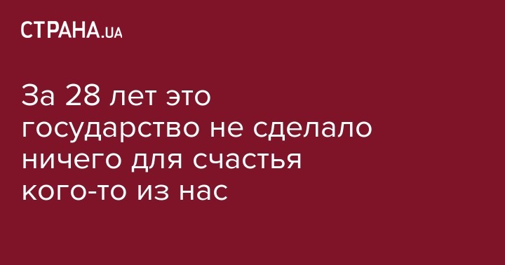 Все-таки нужно быть последовательным. Спустя 28 лет я задаю себе вопрос - что сделало это государство для моего счастья? И я имею чёткий ответ - НИ-ЧЕ-ГО. Мое личное счастье, моей семьи и близких - есть продукт наших личных усилий, которые всегда шли ВОПРЕКИ политике нашего государства. Оно всегда скорее мешало и мешает жизни частного человека, чем помогает ей. Более того, счастливых людей в нашем обществе не любят. Потому что большинство внутренне несвободны. Наше общество слишком медленно мутирует в хорошем смысле этого слова, выталкивая наиболее активных и рискованных личностей из страны. Миллионами. Это главная трагедия Украины.