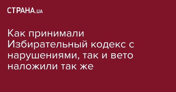 Президент ветував Виборчий Кодекс. Як ухвалювали з порушенням процедур, не допрацюваний документ, так і ветував з порушенням строків.