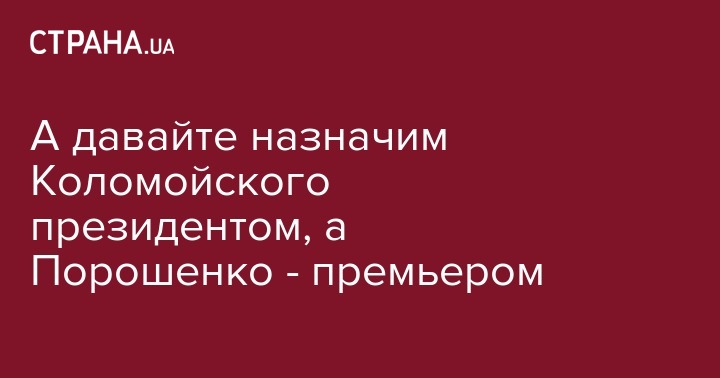 Смотрю я на весь этот позор, как стервятники рвут страну на части, и вот что думаю: сорвать со всех маски, содрать псевдопатриотическую шелуху, назвать по именам, надрать задницу, и дать каждому по заслугам - назначить Коломойского президентом, а Порошенко премьером. И пусть себе правят, как им хочется. Пусть повышают тарифы, устраивают гиперинфляцию, национализируют и денационализируют Приватбанк, пусть травят население телевизором, пусть рыдают в интервью, и кроют журналистов матом, пусть носятся со своим православным Томосом, и строят за бюджетные деньги Синагоги. Где-нибудь на необитаемых островах.