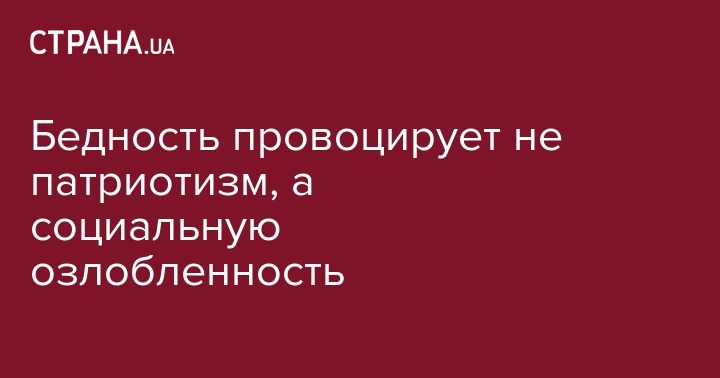 Бедность продуцирует не патриотизм, а социальную озлобленность у бедных, которые не могут вырваться из своей бедности. Бедный человек почти не нужен обществу, оно ему постоянно и везде говорит: " Нам нет дела до тебя, все двери для тебя закрыты, все места заняты. Ступай ". А у бедного человека, как и любого нормального человека, есть свое достоинство, он хочет заявить о своем существовании, о своих амбициях и о своей значимости. Но это бедному человеку не просто сделать,- нет хорошего образования, нет денег, нет необходимых знаний , опыта , нужных связей. Поэтому , в нормальном, стабильном обществе у бедного практически нет шансов подчеркнуть свою значимость и удовлетворить свое эго. Если у бедного нет каких то выдающихся природных или спортивных качеств, он обречен быть бедным и воспроизводить свою бедность.