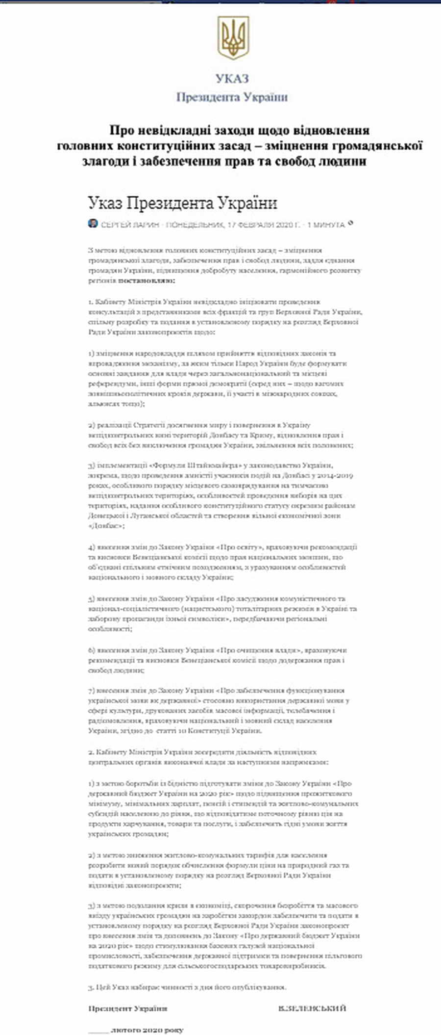 После новогоднего поздравления Президента, я написал пост (http://bit.ly/postProgramma2020), в котором сказал, что оно может стать основой для президентской программы действий на 2020 год. Что вполне соответствовало бы его предвыборной программе, которую поддержало подавляющее большинство избирателей. И совершенно определенно способствовало бы укреплению государственности, гражданского согласия и мира в нашей многострадальной стране.