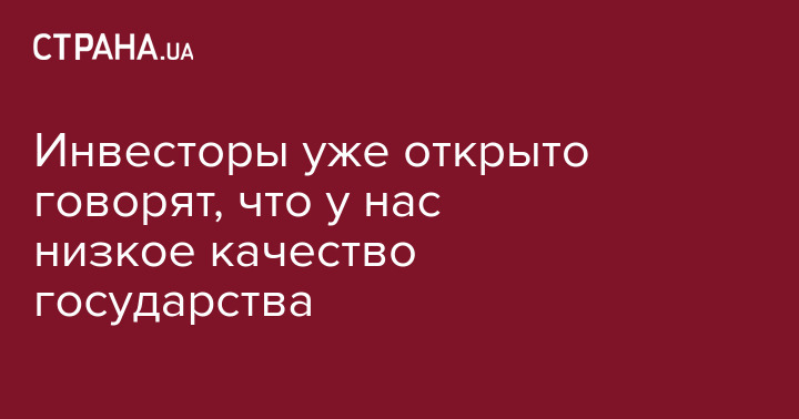 ИНВЕСТОРЫ УЖЕ ОТКРЫТО ГОВОРЯТ, ЧТО У НАС НИЗКОЕ КАЧЕСТВО ГОСУДАРСТВА, ЭТО – ГЛАВНАЯ ПРОБЛЕМА