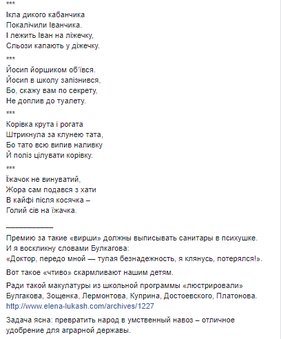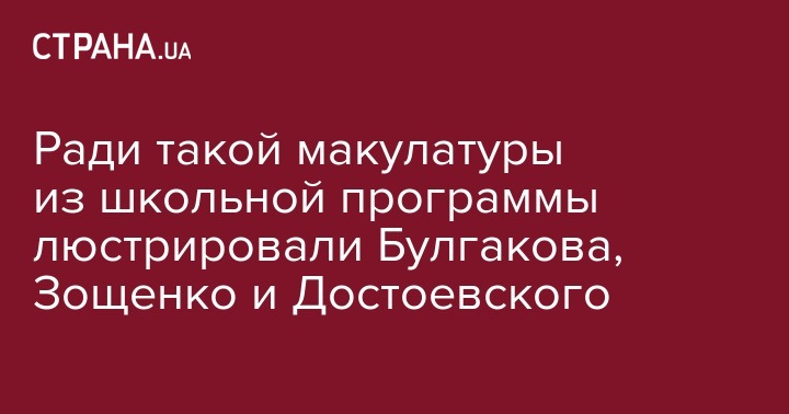 Ради такой макулатуры из школьной программы «люстрировали» Булгакова, Зощенка, Лермонтова, Куприна, Достоевского, Платонова.